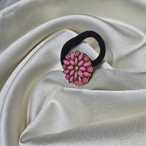 Handcrafted kundan hairband (Pink)