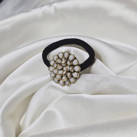 Handcrafted kundan hairband (White)
