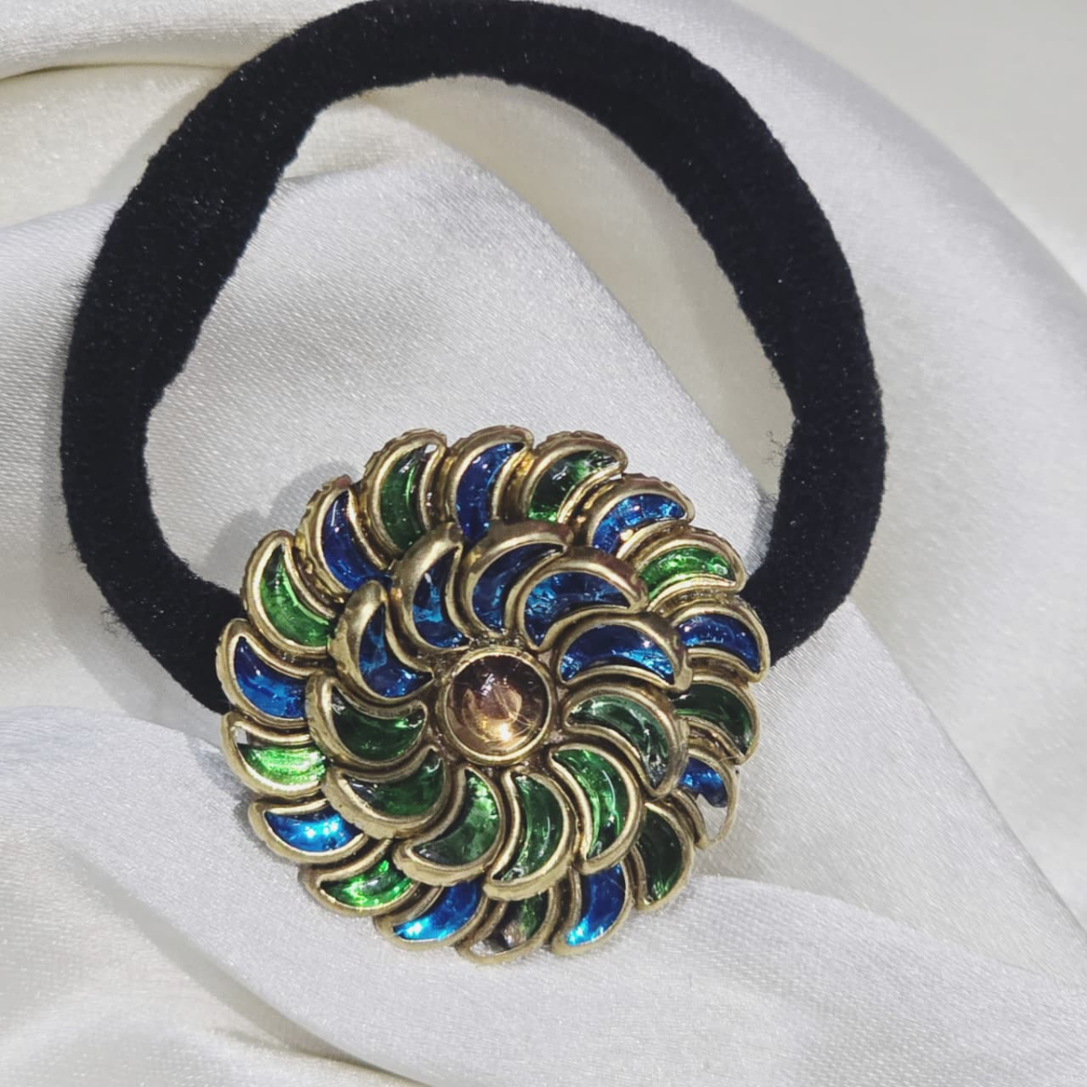 Handcrafted kundan hairband (Blue & Green)